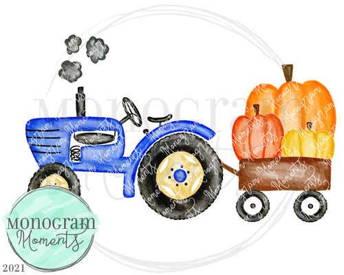 Blue Vintage Tractor & Pumpkins