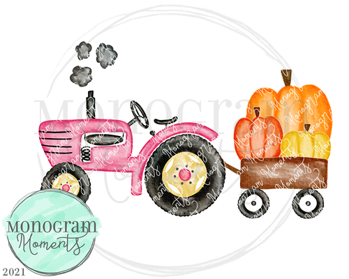 Pink Vintage Tractor & Pumpkins