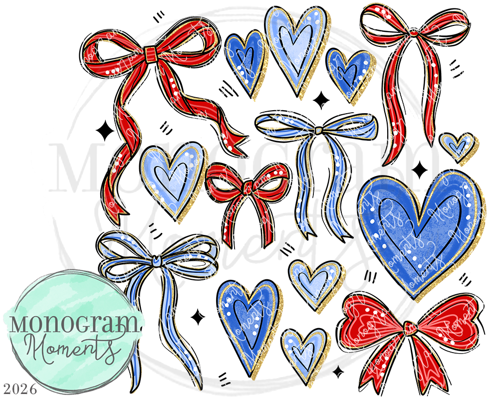 Heart Bow Collage -Blue & Red